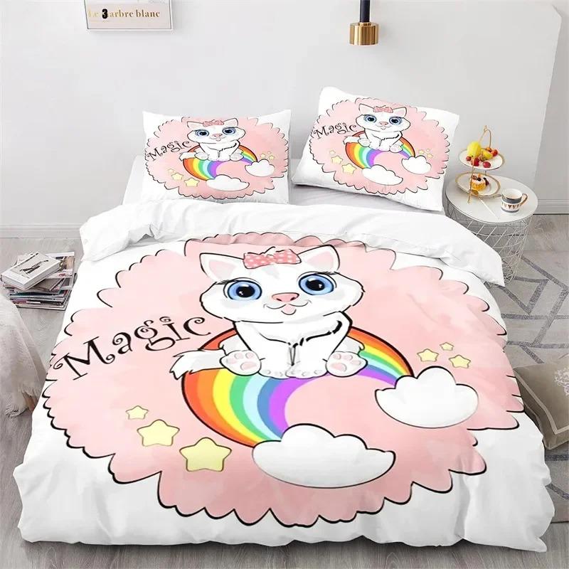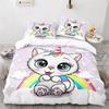 Kids Unicorn Duvet Cover Twin Cartoon Magical Animal Bedding Set Microfiber Cute Rainbow Cat Comforter Cover For Girls Teen Gift