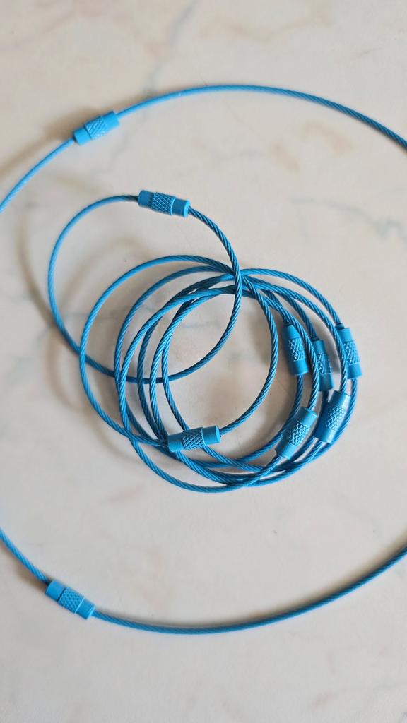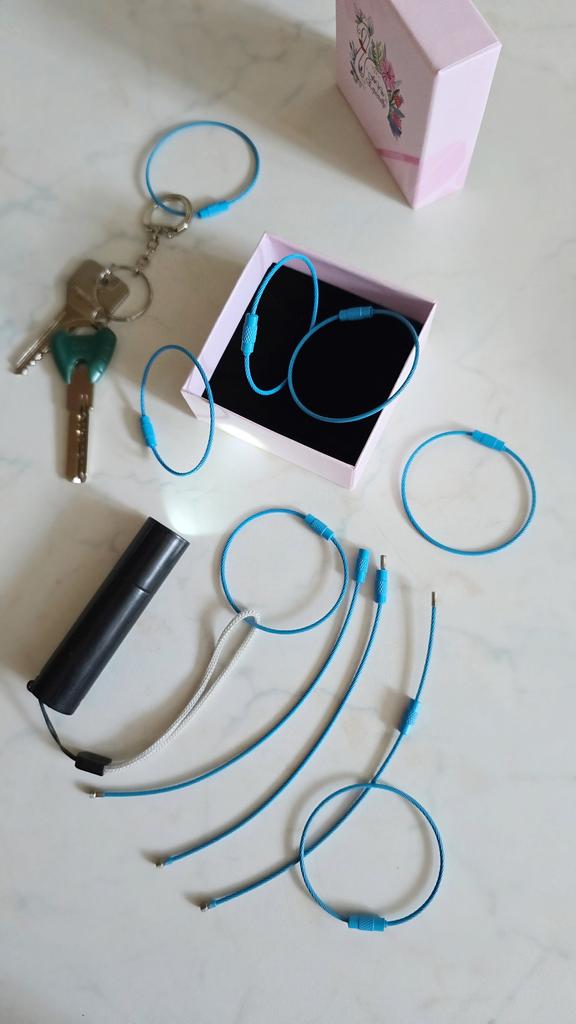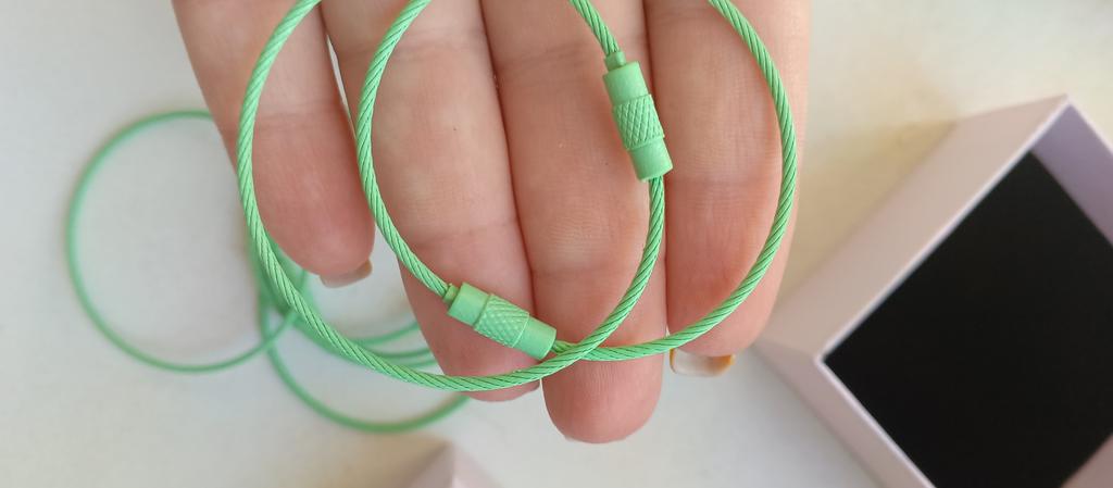 Good flexible rings 👍 Can be used as keychains or pendants for something, for example a flashlight. quality. Essentially, the ring is a thin metal cable, sealed on both sides. On one side, there is a thread onto which a special matching cap is screwed.. I am satisfied with the order, thank you 🩵