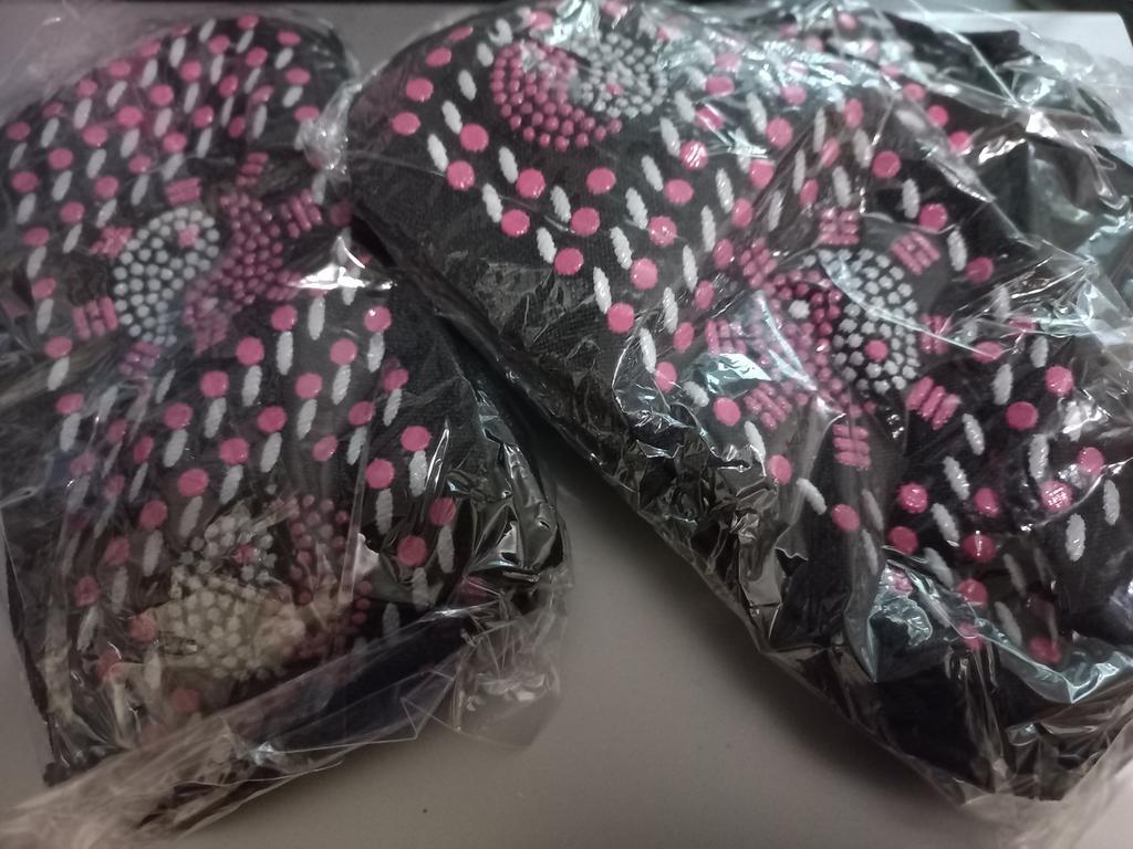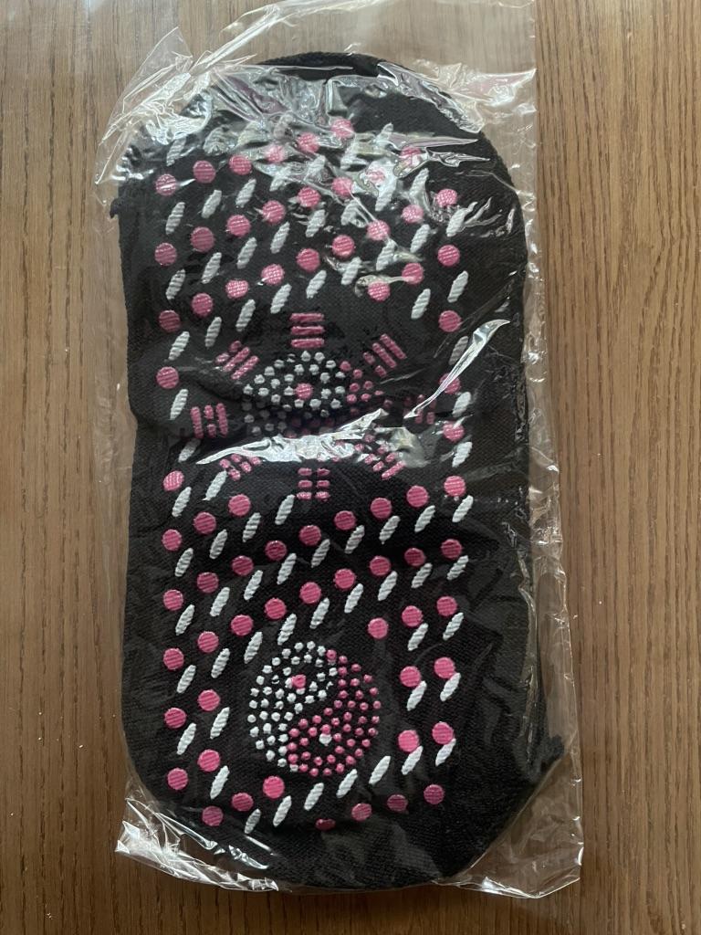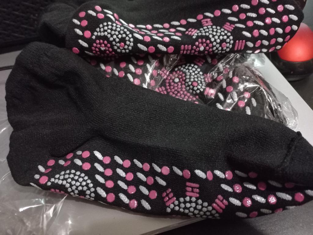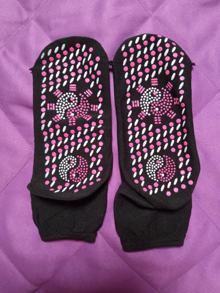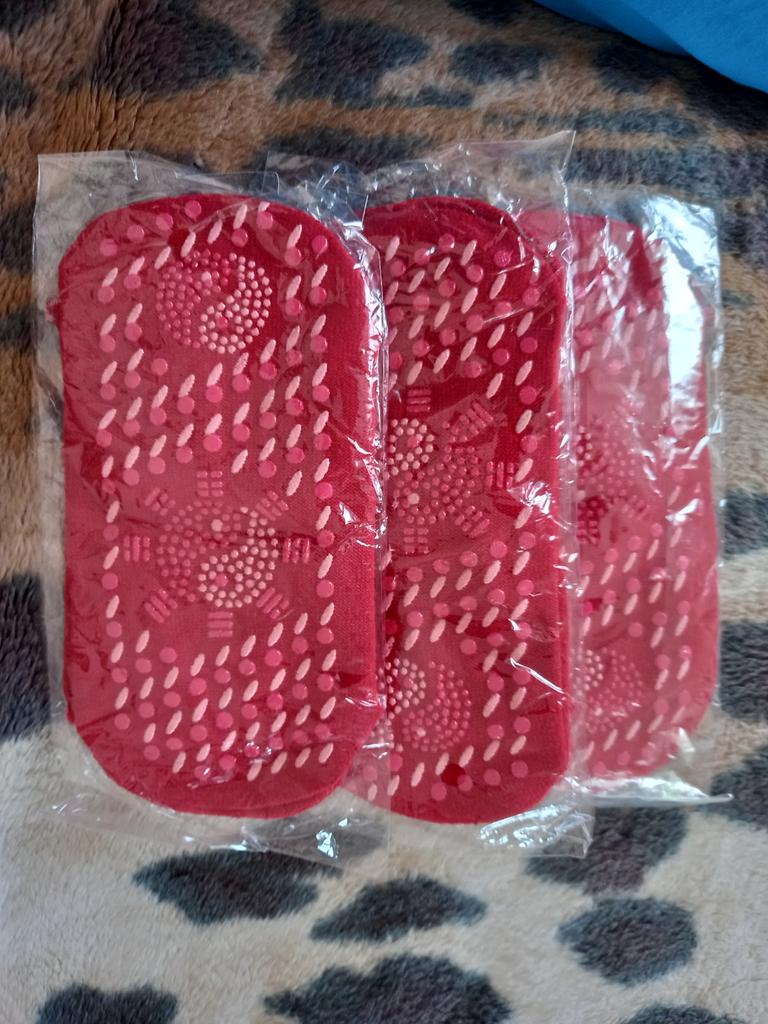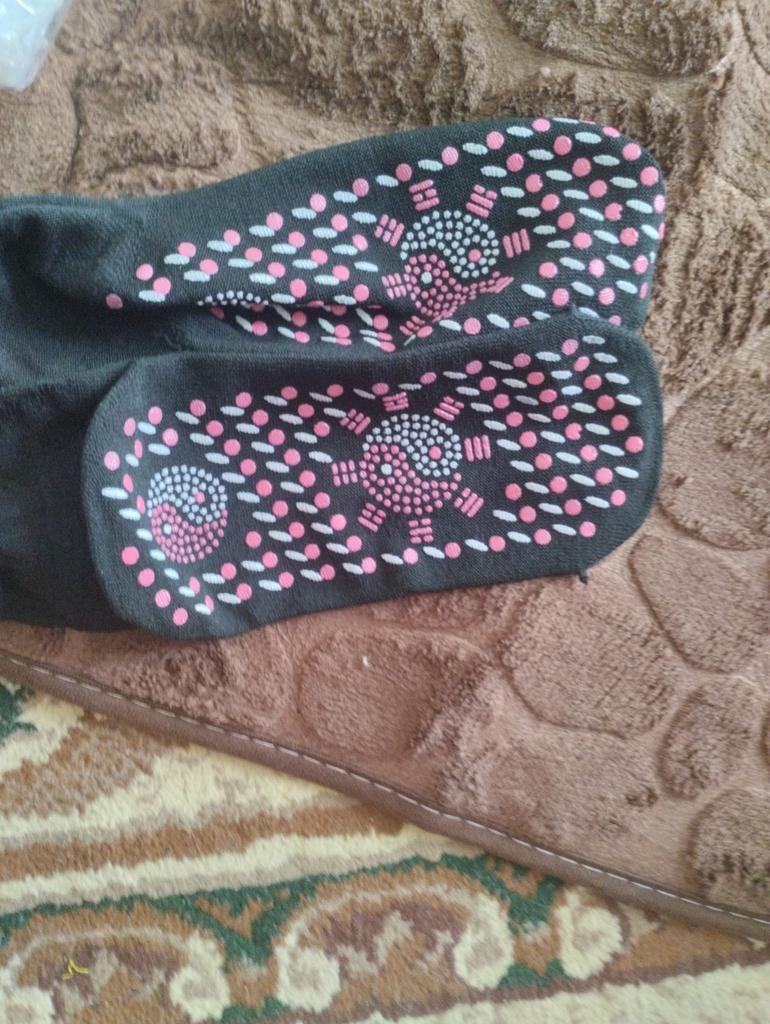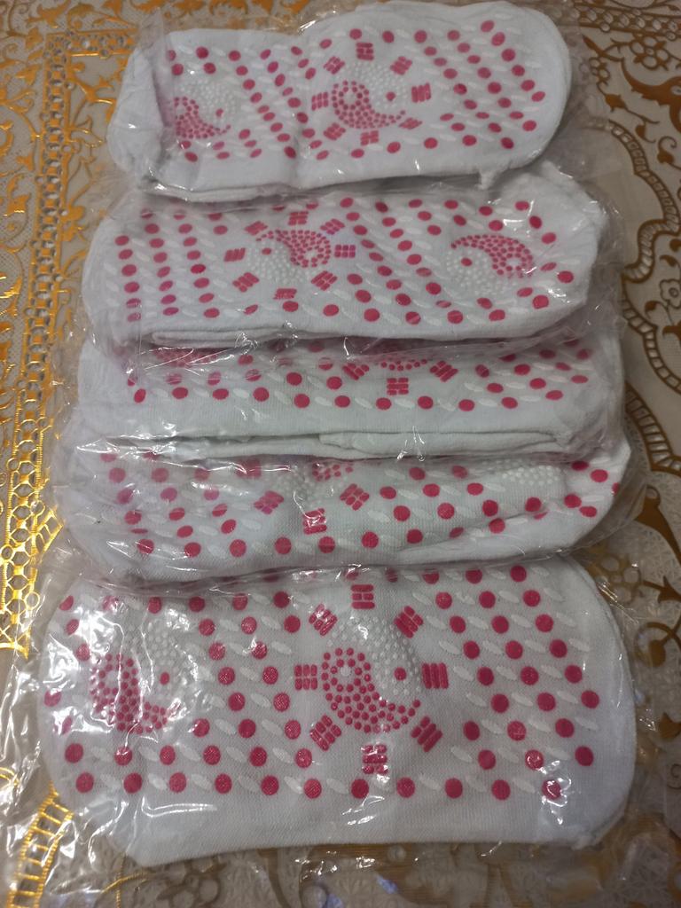Received 5 pairs of red socks, excellent! Elastic, stretch well, with tourmaline on the sole. Noticed they help if the legs are restless, and they warm and relieve cramps.