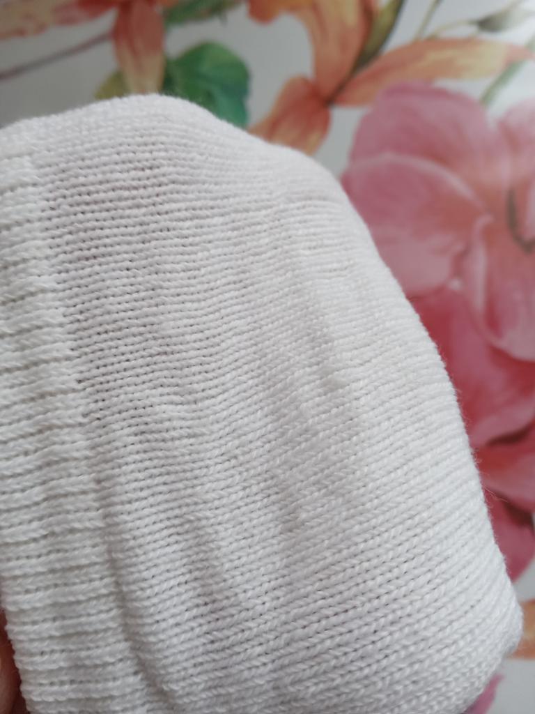 Synthetic socks, it's summer now, haven't been used. No one writes how to put them on. All these dots on the left side, it turns out they should be against the foot and keep it warm. But the photos show everything on the outside