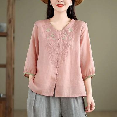 Spring Summer Art Retro Cotton Linen Loose Cotton Linen Women's Clothing Seven Quarter Sleeve Top Versatile Art Blouses Shirts