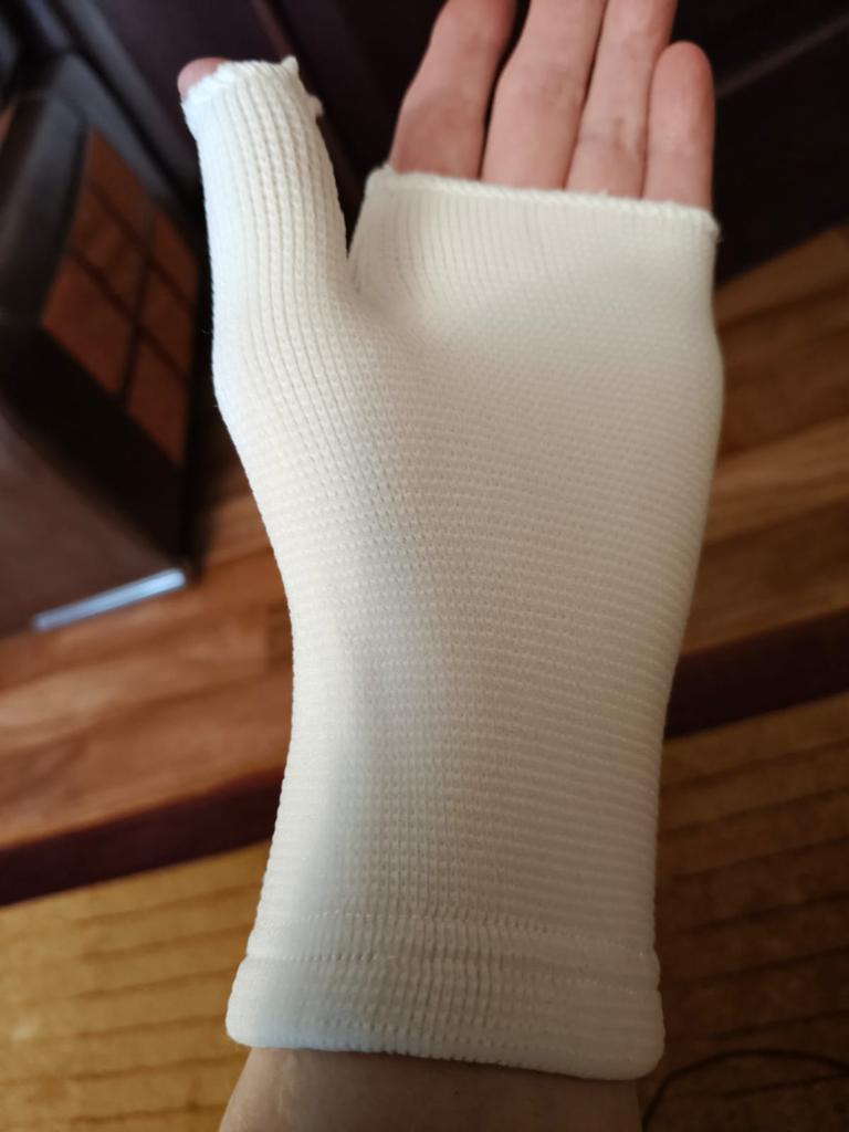 Thick knit, tight gloves. I took it for the wrist