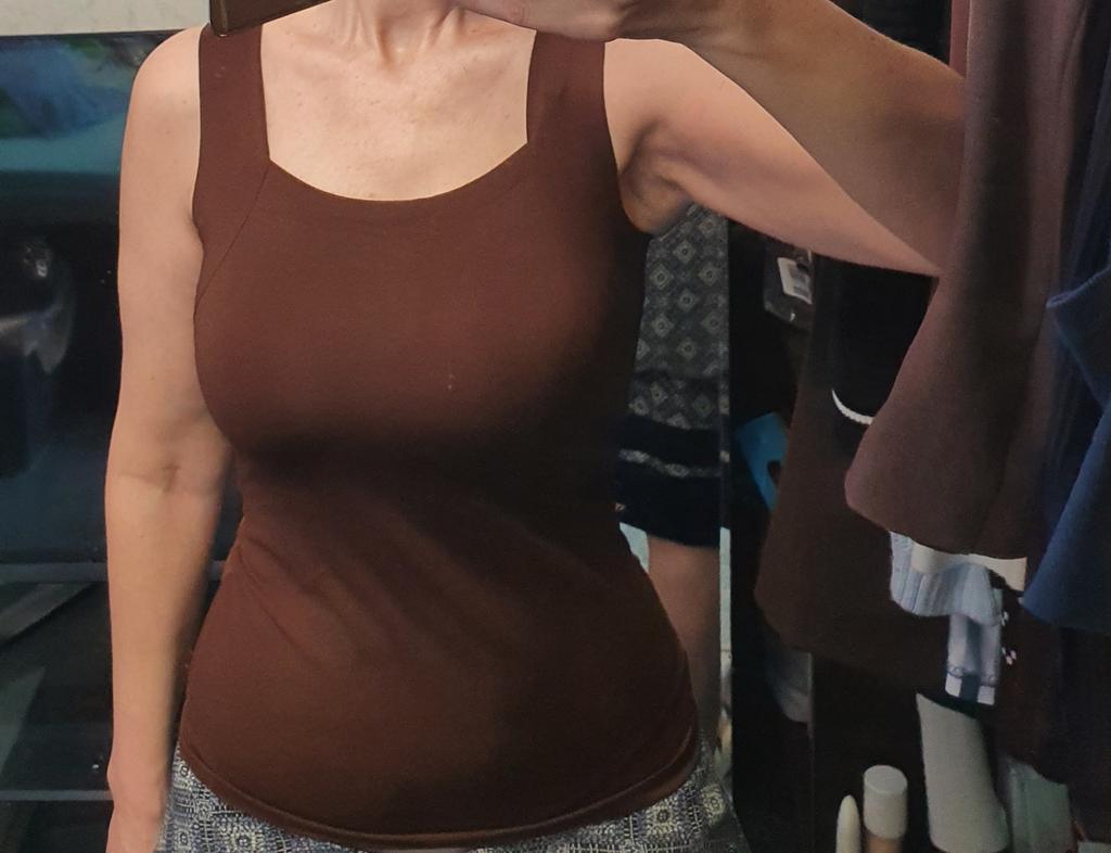 The tank top is just super, but not for a large bust. It's just right for me. Thank you.