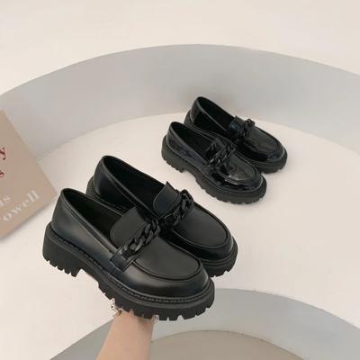 2023 Women's Black Retro Leather Loafers, Thick Heels - British Style, JK Thick-Soled College Shoes, Perfect for Autumn and Winter.