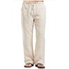 Plus Size Men's Spring and Summer Linen Pants Breathable Sweat-Absorbing Wide-Leg Long Pants Casual Solid Drawstring Trousers