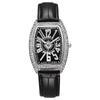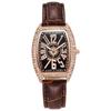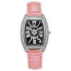 Ladies Leather Belt Rhinestone Watch Barrel-shaped Roman Numeral Wristwatch