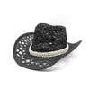 Hollow-Out Western Denim Straw Hat, Curled Edge, Beach Hat, Men'S And Women'S Summer Outdoor Sunshade Straw Hat