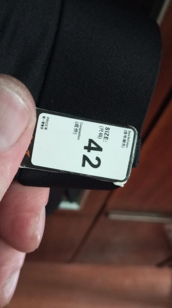 size: 42, Waist: 106.7cm, Hip: 127cm, Thigh: 37.5cm, Knee: 50.2cm, Leg: 41.5cm, Front Rise: 33cm, Back Rise: 43.2cm, Outseam: 110cm.