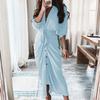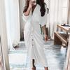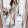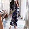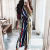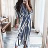 Women's Long Sleeve V-Neck Printed Dress Long Dress