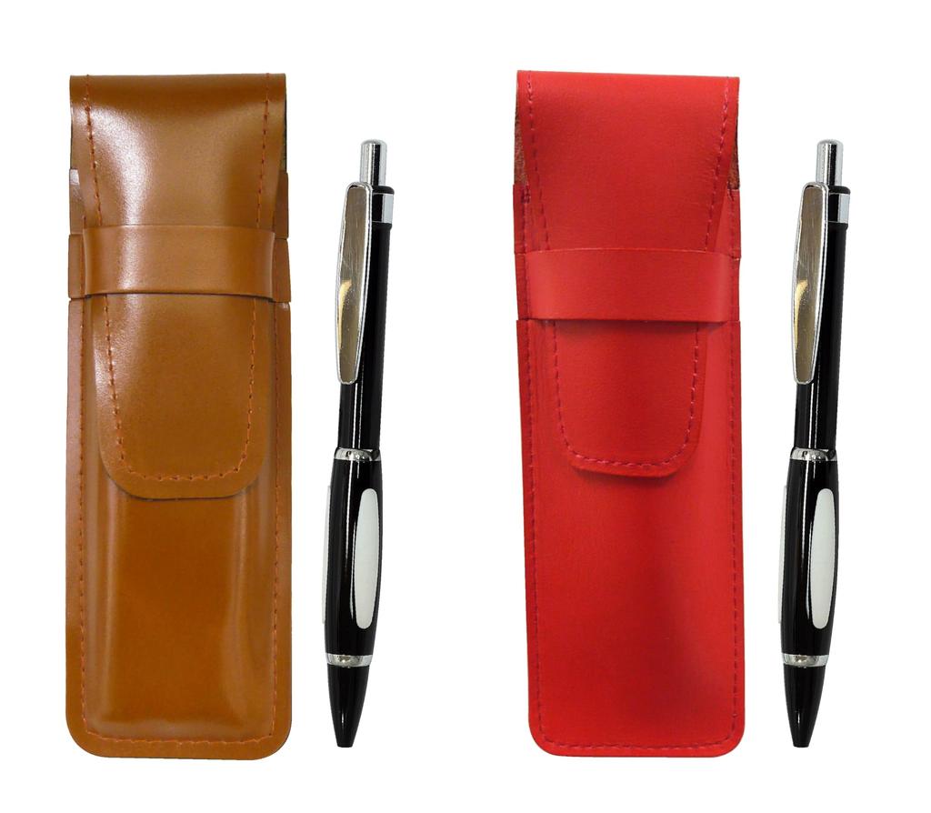 Slim Cowhide Pencil Case Red Brown Set Metal Scorpion Shocking Ballpoint Pen Black ASCR-B989A-B