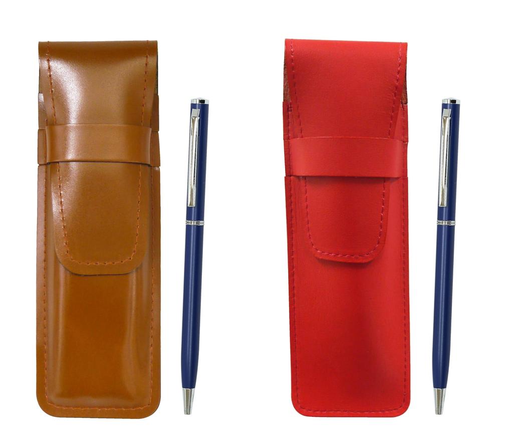 Slim Cowhide Pencil Case Red Brown Set Slim Rotary Ballpoint Pen Blue ASCR-PD04-L