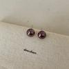 Cool Feeling Cold Gray Red Light Steamed Bread Pearl Stud Earrings Women'S Simple Niche Fashion Exquisite Versatile Earrings