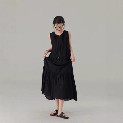 DIMANAF 2025 Plus Size Dress Summer Women Black Sleeveless Vintage Loose Maxi Basic Style Holiday New Dress