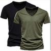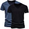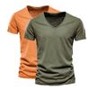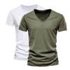 2 PC Summer Men'S New Solid Color Bamboo Cotton V-Neck Short Sleeved Pure Cotton T-Shirt