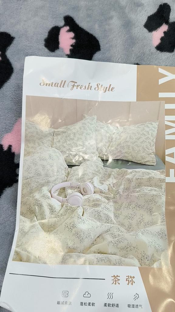 The photo showed a complete set (duvet cover, pillowcases, and sheet), the description stated that it was a 4-piece bedding set, but only the duvet cover arrived, unfortunately. But the quality of the duvet cover is good, it's a shame that the set is not complete.