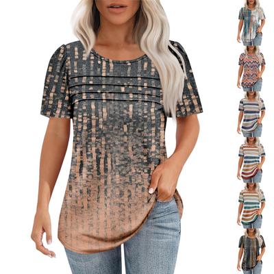 Women's Fashion Printed Casual Pleated Round Short Sleeve T-Shirt Top