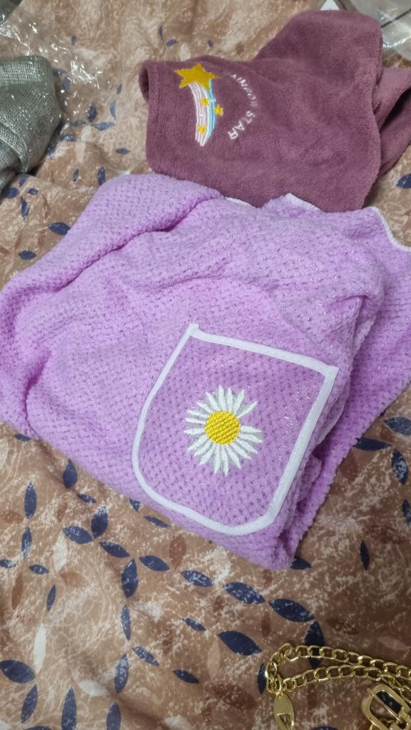 Towel for the bath, soft, instead of a sheet, just what's needed! I recommend it, not long, up to my knee, and a towel for the head, what's needed. I recommend.🫶