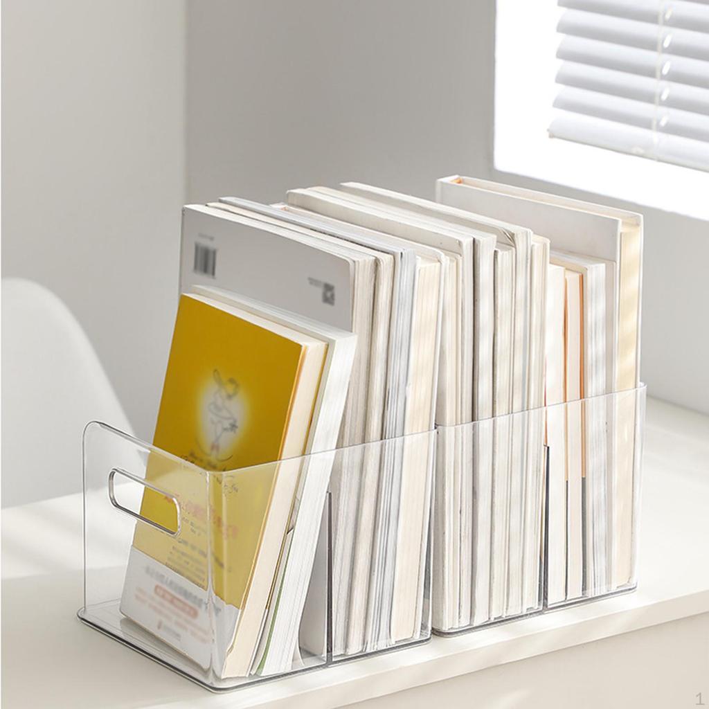 - 【Simple Design】: A modern clear desktop bookshelf file organizer with portable handles, easy to carry and move, is a nice addition to your home decoration