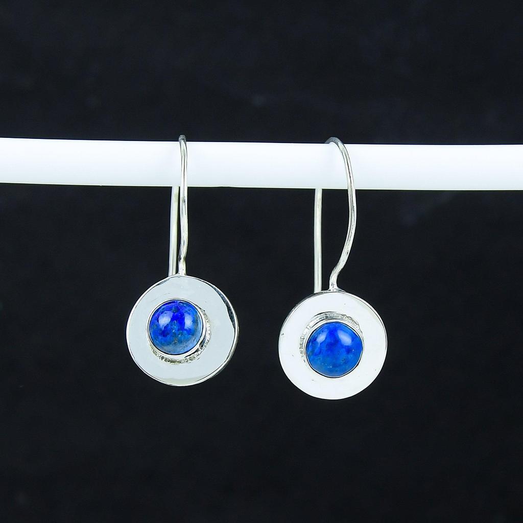 Natural Lapis Lazuli Gemstone Hoop Earrings, 925 Sterling Silver Earring, Handmade Boho Silver Jewelry Dangle Earrings, Birthday Gift