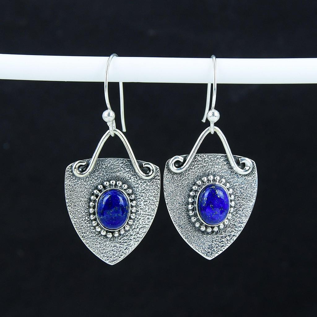 Natural Lapis Lazuli Gemstone Hoop Earrings, 925 Sterling Silver Earring, Handmade Boho Silver Jewelry Dangle Earrings, Wadding Gift