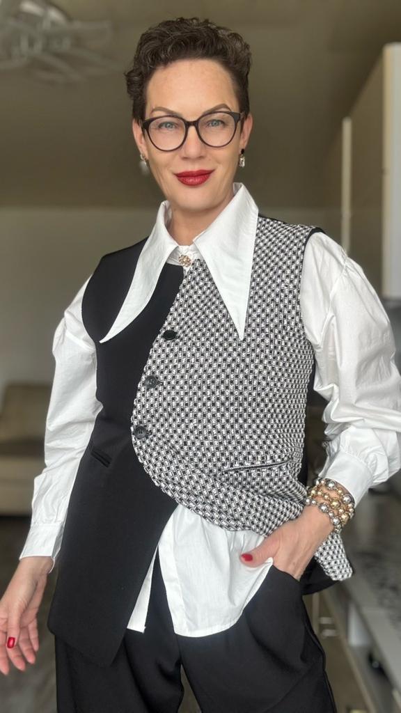 Elegant Women's Long Vest Sleeveless Collar Contrast Color Slim Fit Waistcoat Autumn Spring Fashion Outwear