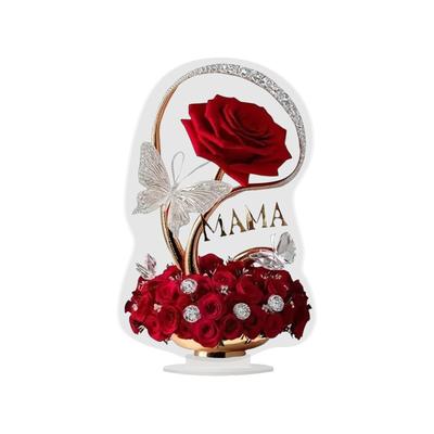 2D Acrylic Ornament Red Rose MOM Pattern Roses Mother Flat Elegant Desk Decora Filial Child To Mother Gifts