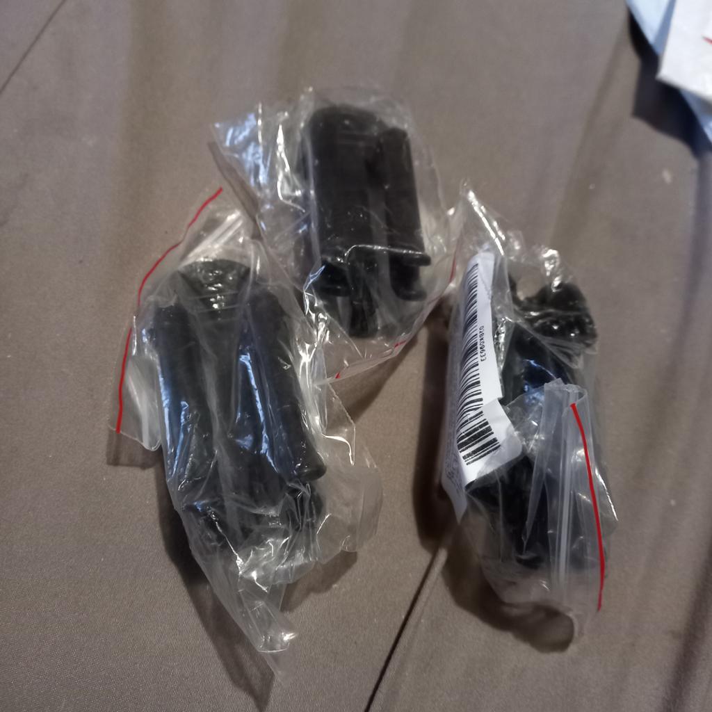 Practical plastic clips for securing garbage bags.