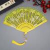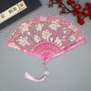 1Pc Chinese Ancient Style Flower Women Folding Fan with Tassel Fringe Hanfu Cheongsam Dance Fan Photo Props Summer Handheld Fan