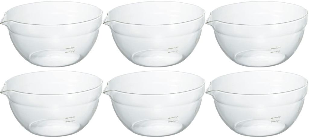 Hario Made In Japan Heat Resistant Glass Single Mouth Bowl 800ml Set of 6 Clear KB-80-BK