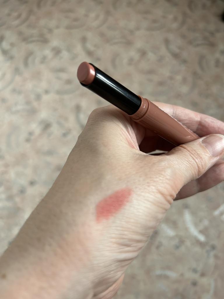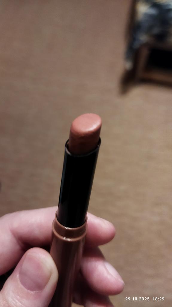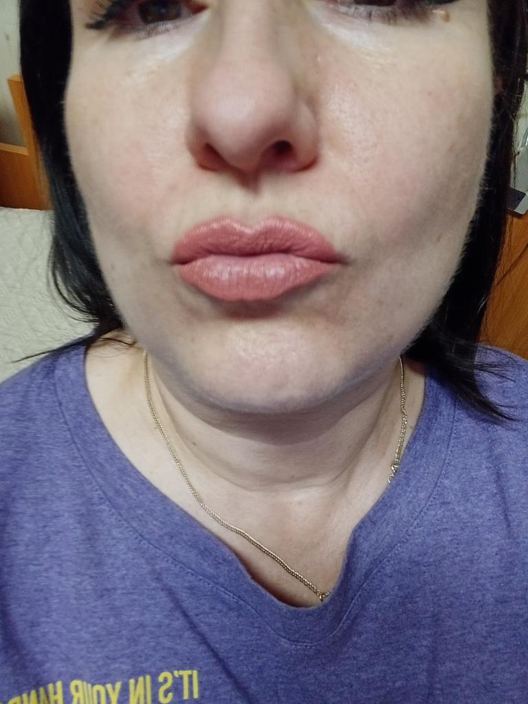 Gorgeous. The color is exceptionally good. It covers softly, without streaks or layering. It holds up well, without a lacquered shine, matte, but lively - there is no painted chalk, plaster effect on the lips. It lies naturally, does not roll up. There is almost no smell. I recommend it.