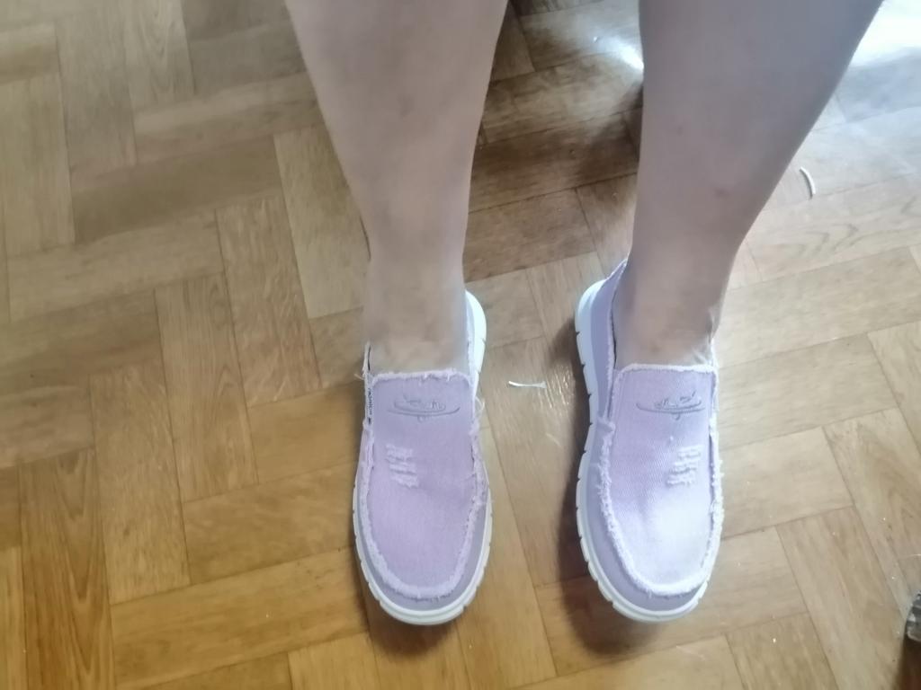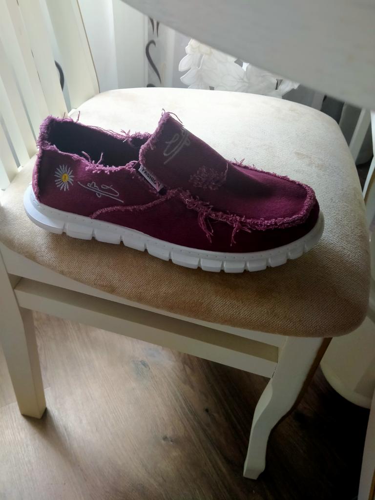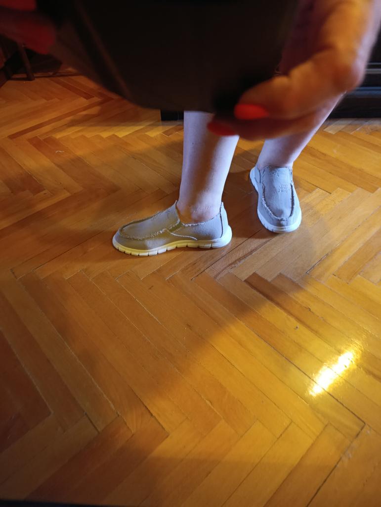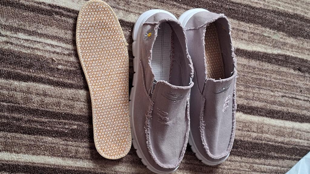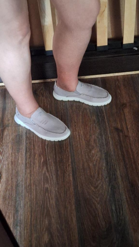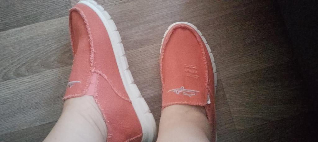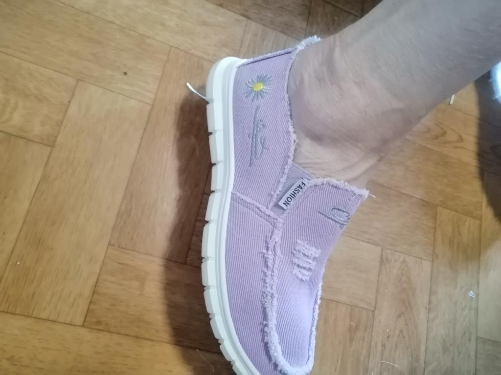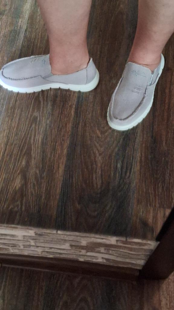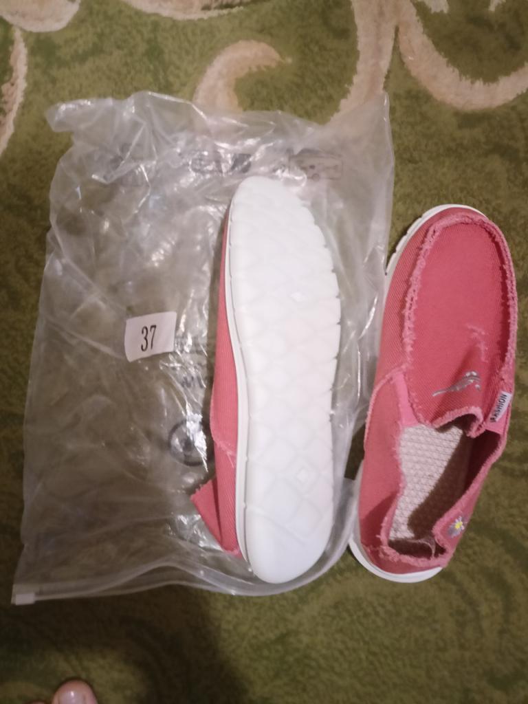 Slip-ons for a wide foot, fit perfectly by the insole (size 39), but in width, even in the photo it is visible that they are a bit wide, although the feet are swollen after work. There is a slight smell. In principle, the color is as in the photo. Thank you for the gift