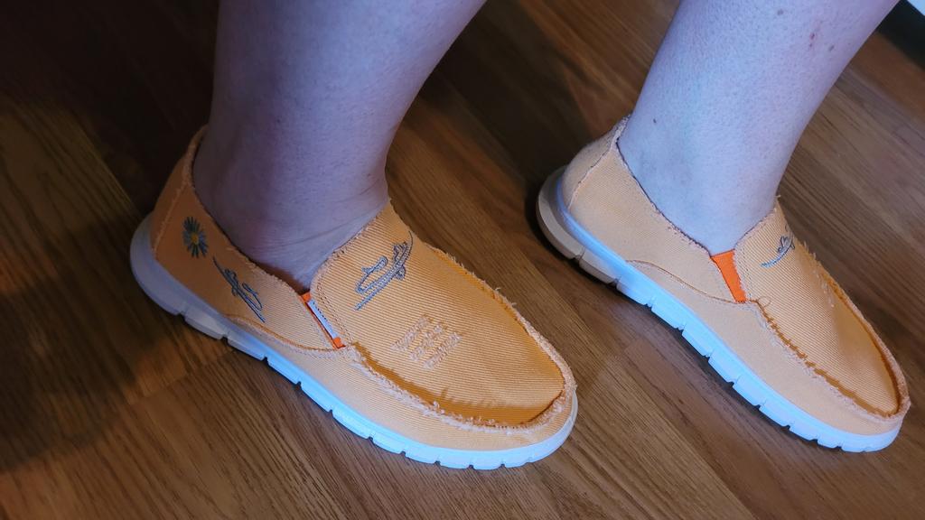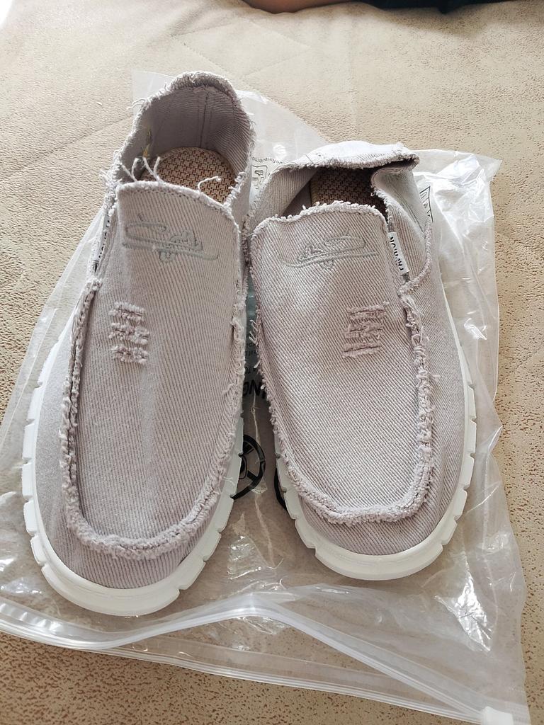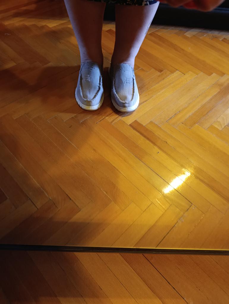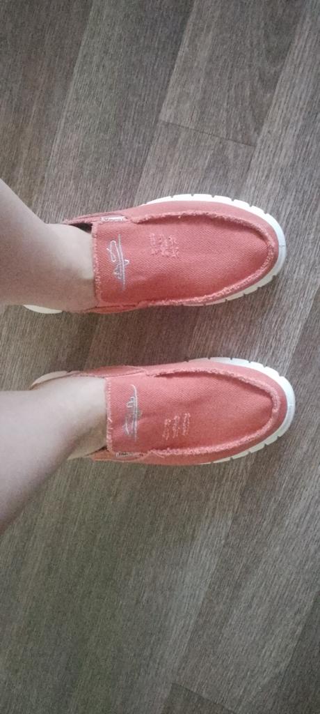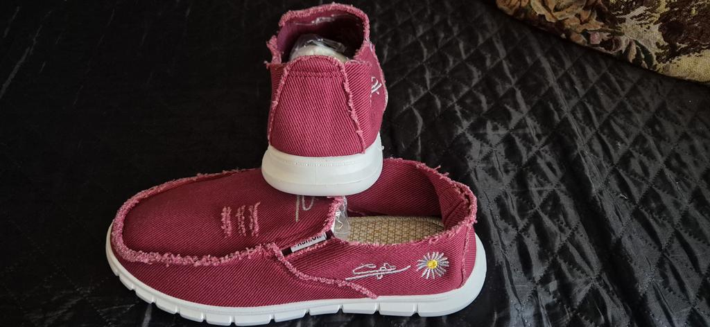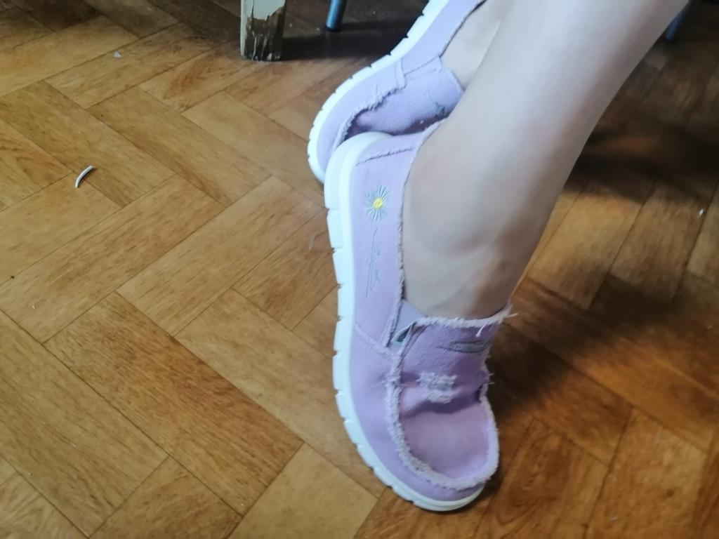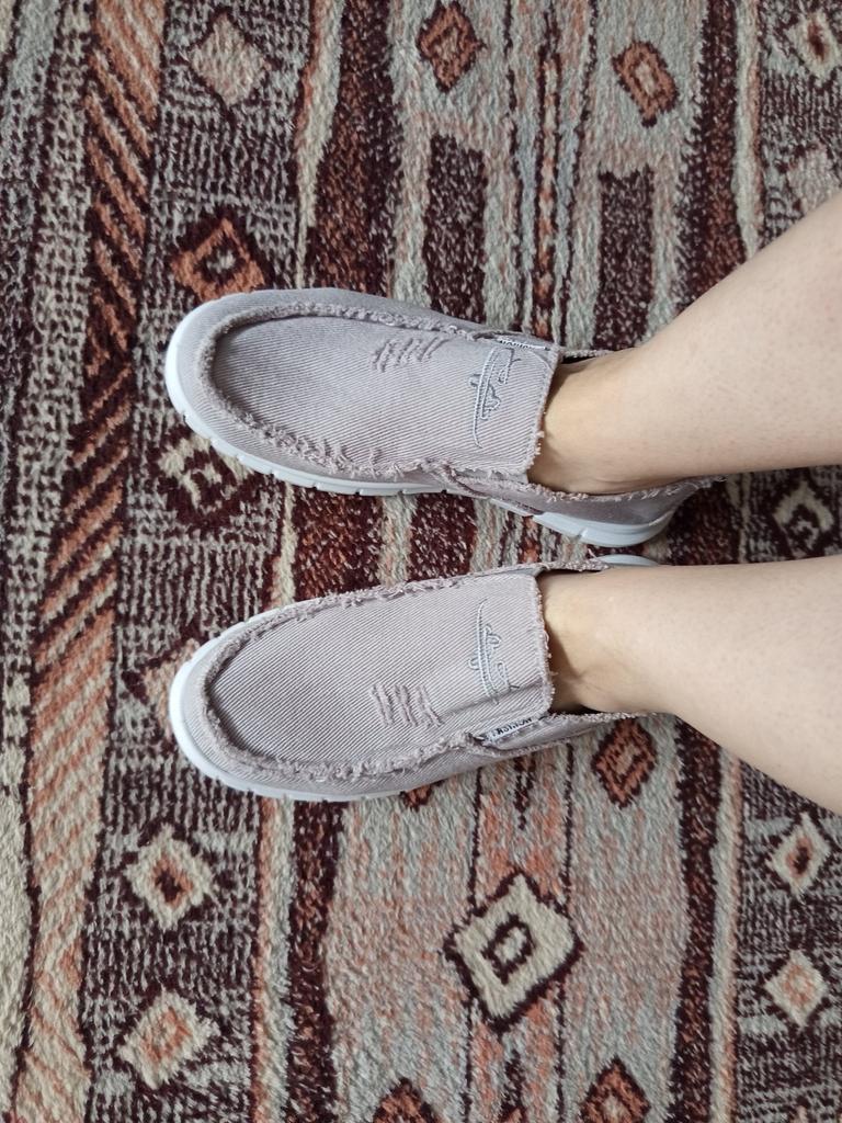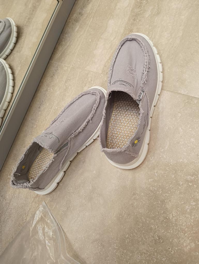 Slip-ons for a wide foot, fit perfectly by the insole (size 39), but in width, even in the photo it is visible that they are a bit wide, although the feet are swollen after work. There is a slight smell. In principle, the color is as in the photo. Thank you for the gift
