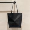 PuzzleFold Cowhide Foldable Geometric Tote Bag with Large Capacity