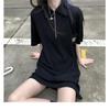 Waffle Polo Collar Straight Summer Dress 2024 - Women's Simple, Solid, Age-Reducing Short Skirt