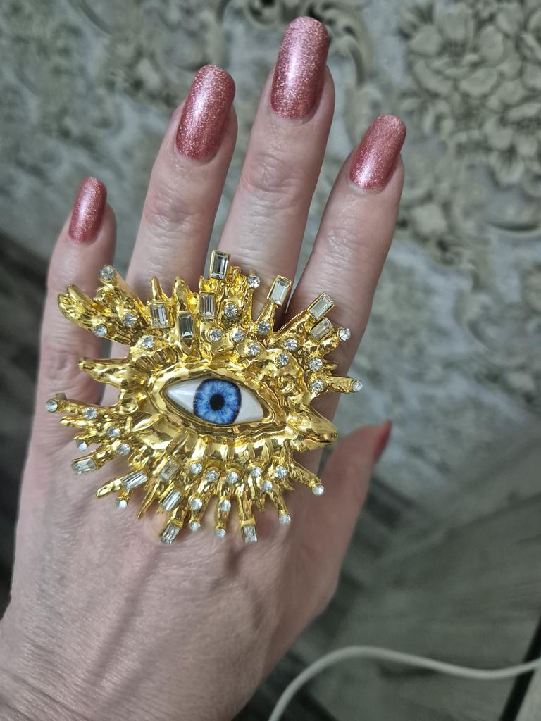 "Exaggerated Retro Devil Eye Earrings & Ring Set with Diamond Thorns"