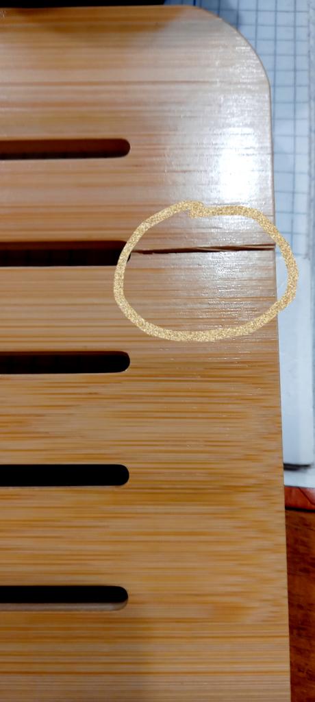 Delivered in a crumpled parcel box. As a result, the tray has a chip on the edge, the wooden stand is cracked. How to give it as a gift?