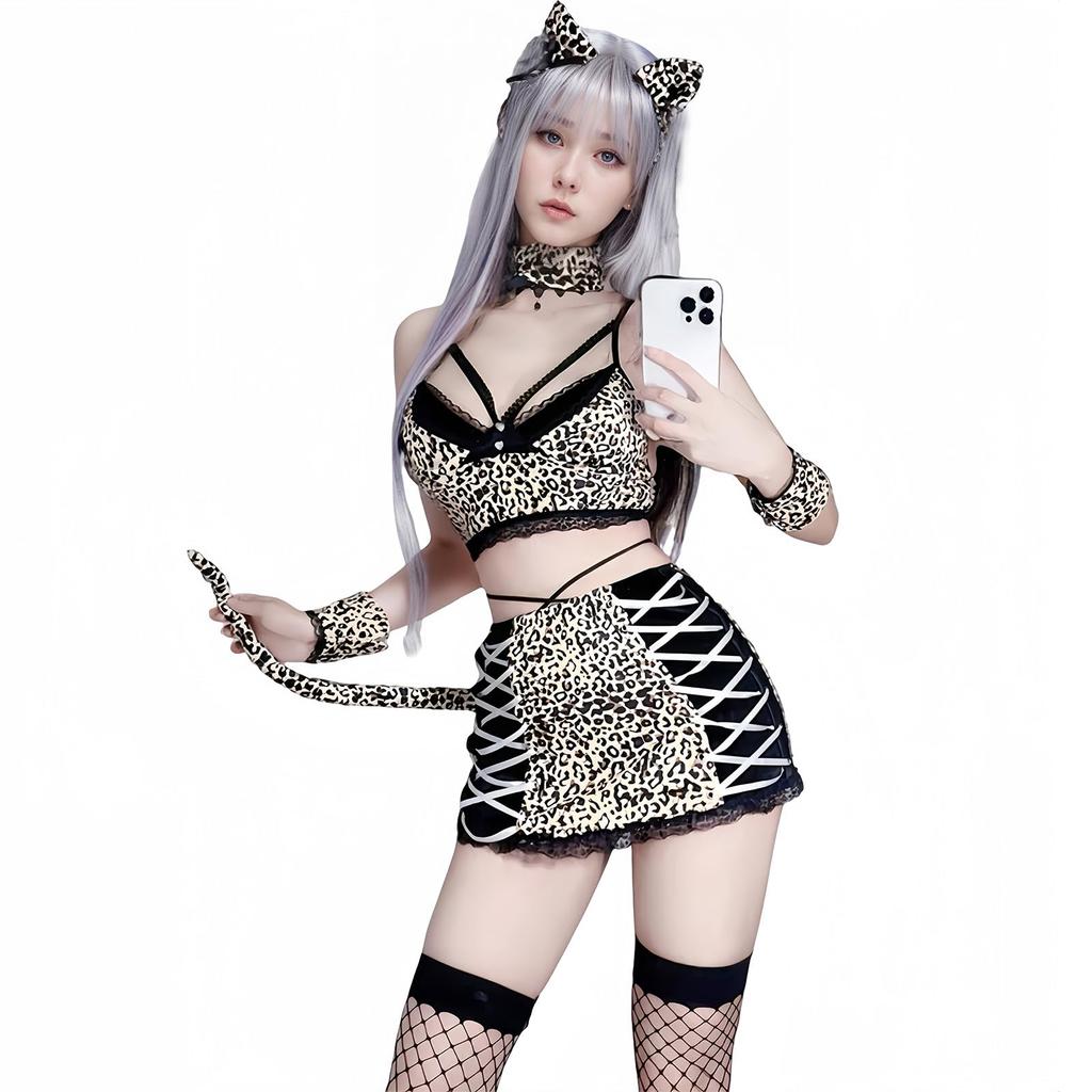 Cosplay Sexy Cat Tiger Leopard Print Cat Erotic Sex Training Temptation Extreme Small Breasts Cat Bold Underwear Tight Bodycon Lingerie Babydoll