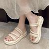 Women's High Platform Sandals Wedge-shaped Hollow Mu Shoes Casual Chunky Gladiator Sandals Summer Leather Beach Slippers