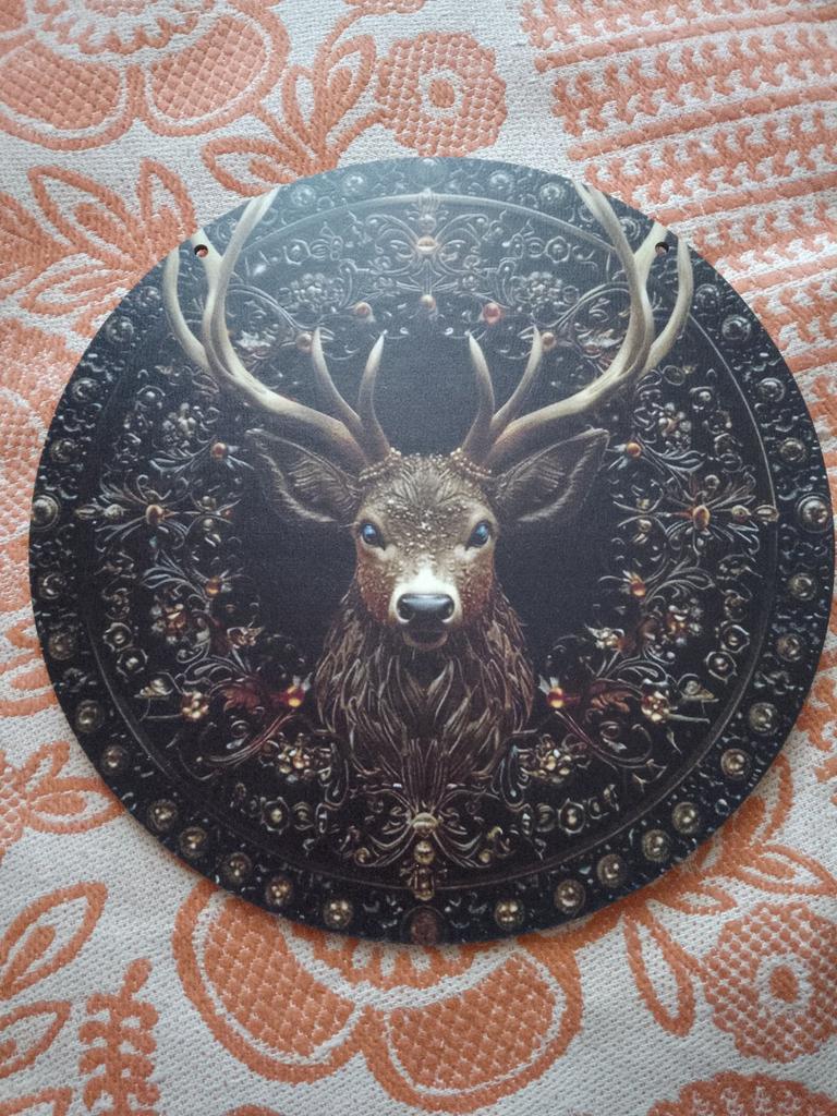 Deer Head Wreath Sign - Round Wooden Decor with 2D Flat Print Design - Home, Wall Decoration and Decorative Gift