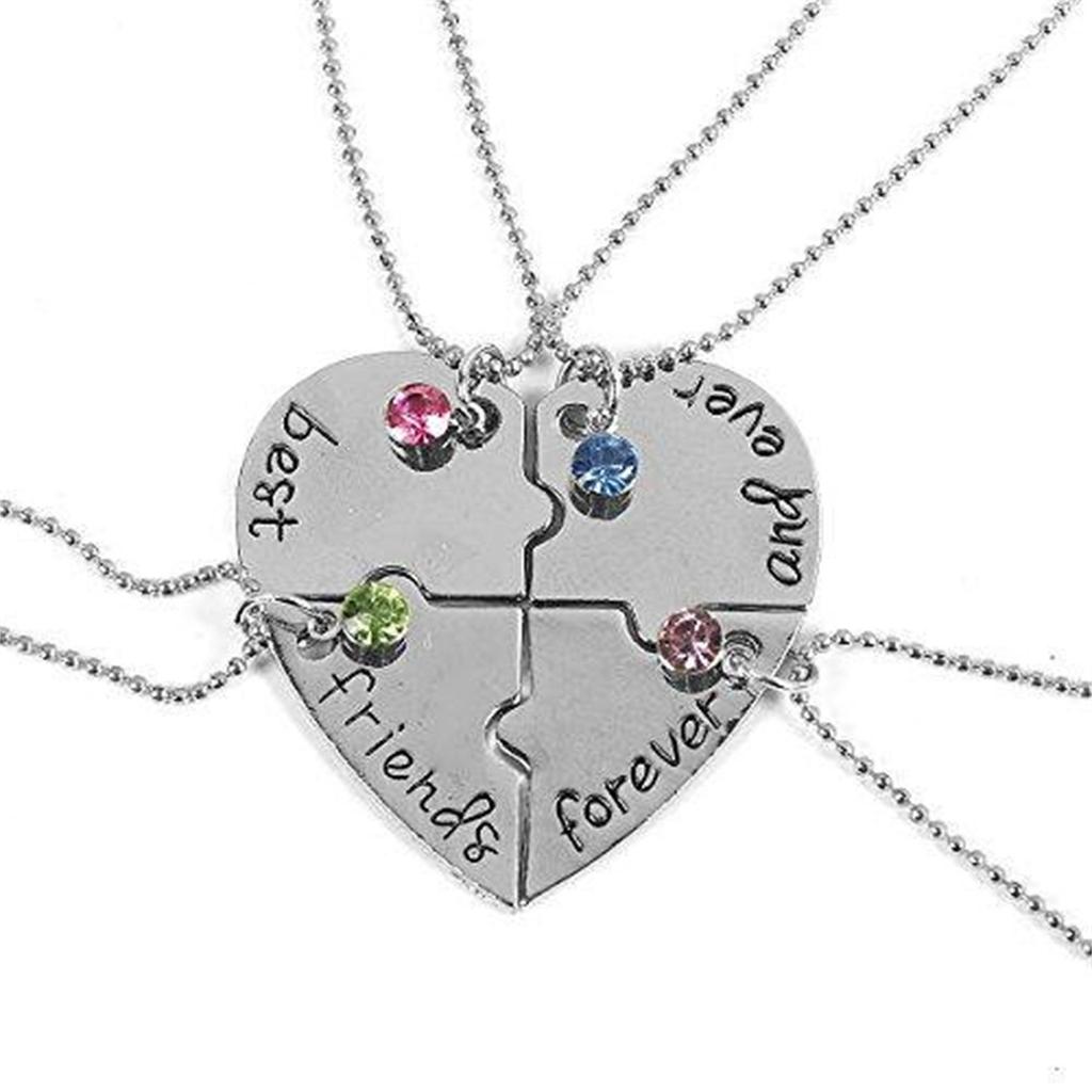 4 Pcs Best Friends Forever And Ever Necklace Engraved Puzzle Friendship 4 Pieces Pendant Necklace Set, Metal Alloy & Rhinestones
