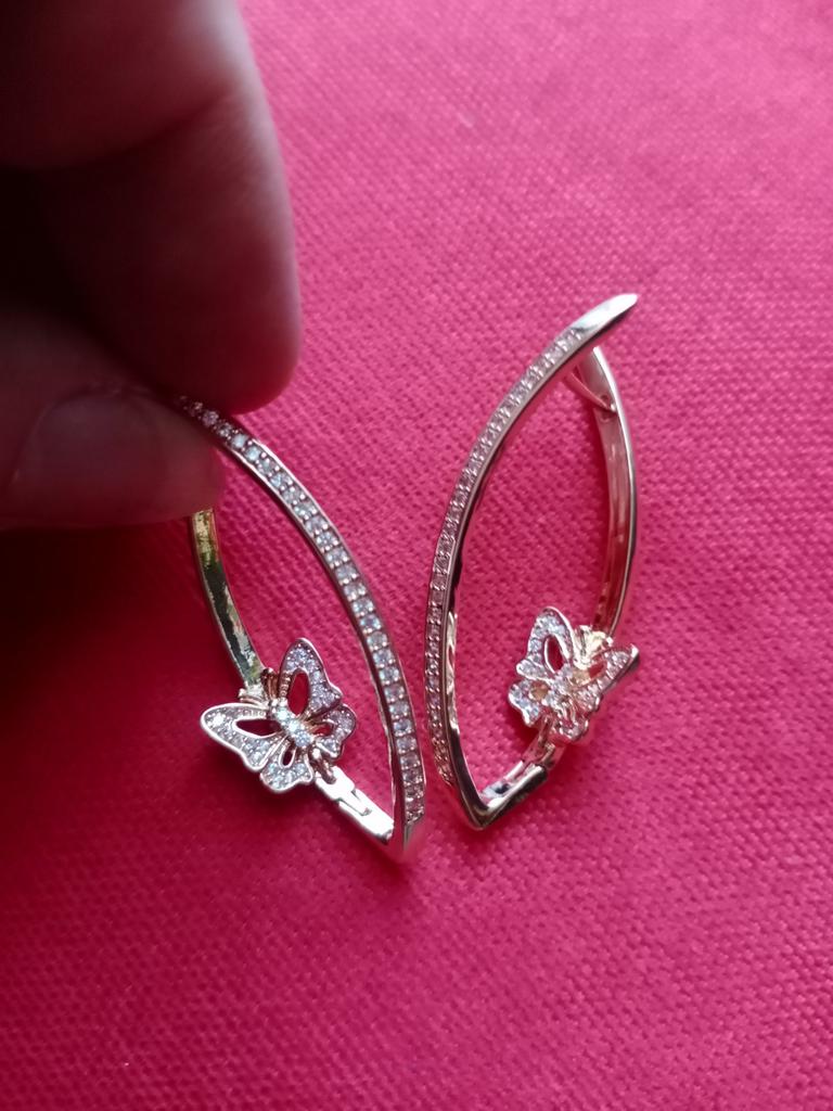 Fashion Gold Color Geometric Butterfly Earrings for Women Zircon Micro Inlaid Long Drop Earrings Exquisite Wedding Jewelry