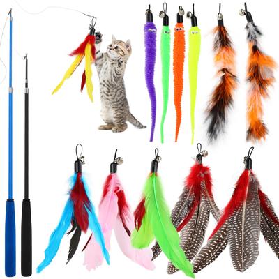 Cat Feather Toy Interactive Feather Teaser Toy Retractable Cat Toys Wand 11 PCS