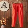 Women Loose Slim Cotton and Linen Pants Summer Thin Nine-Point Harem Pants Casual Straight Fit