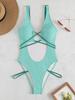 One Piece Swimsuit Swimwear Women Solid Pit Striped Hollow Backless Cross Straps Beachwear Bathing Suit Banadores Mujer