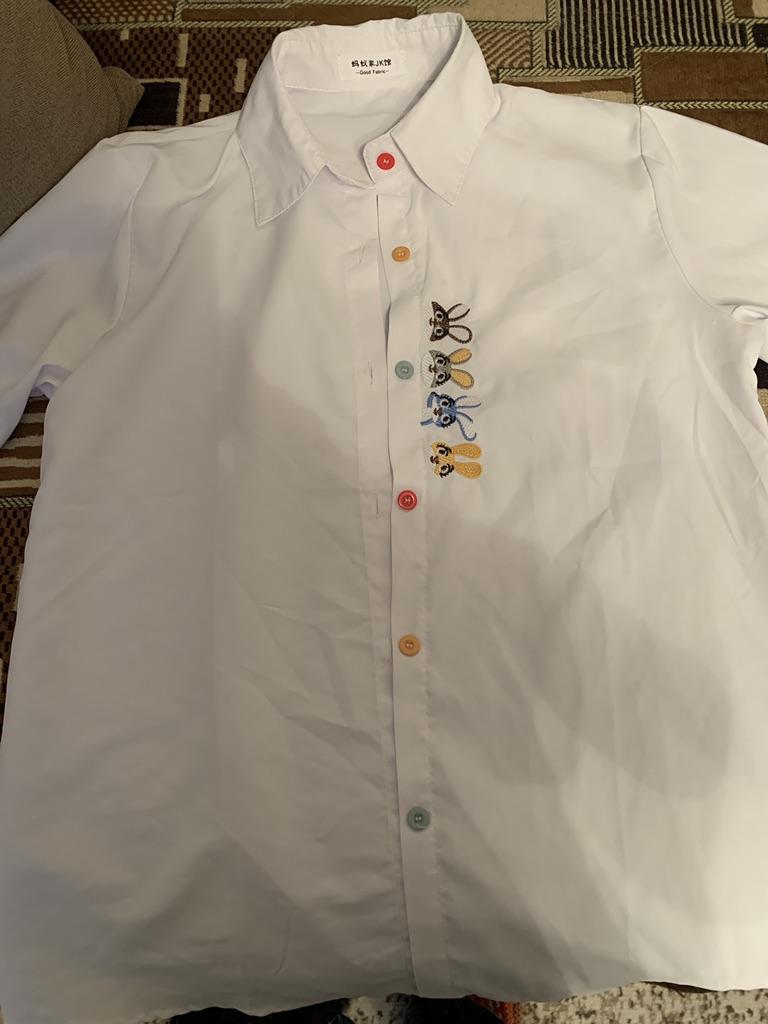 2024 Spring and Autumn New Embroidery Colour Buttons Cartoon Loose Shirt Female Long-sleeved Bottoming Shirt Tops