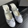 Ballet Flats Women Shoes 43 Mary Jane Shoes Round Toe Women's Shoe Bow Silk Satin Flats Women Shoes Plus Size 33-43 Valentine