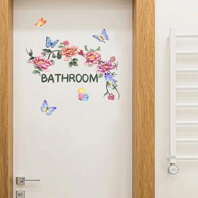 Beautiful Butterfly Flower Wall Stickers Toilet Bathroom Door Decoration Mural Home Decor Self-Adhesive Beautify Wallpaper