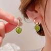 Green Double-Sided Heart Earrings - Fashionable Square Oil Drip Design