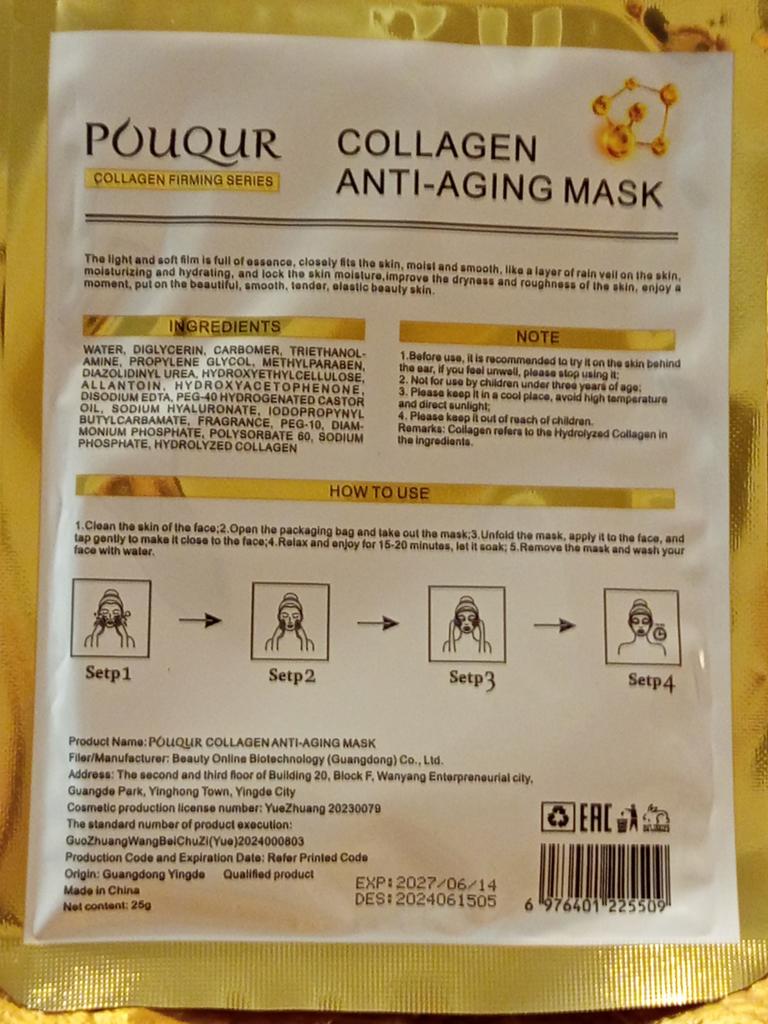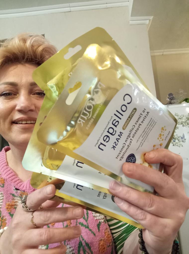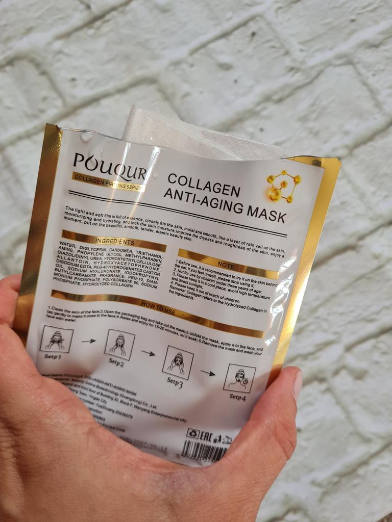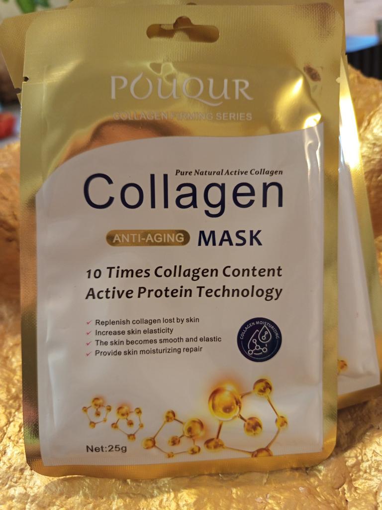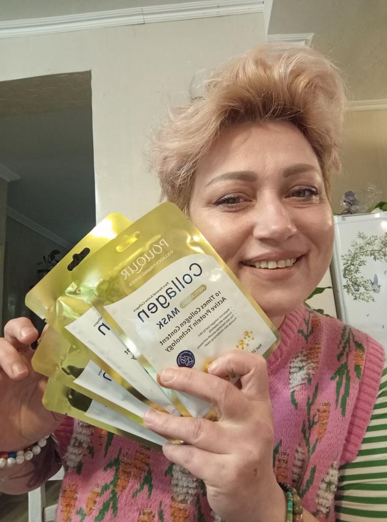 Tissue collagen masks Set of 5 masks, each in individual packaging Lots of liquid inside The mask is of standard shape and white color, fulfills its functions, with regular use the skin is rested and tightened.. Manufacturing date June 2024 The most positive impressions