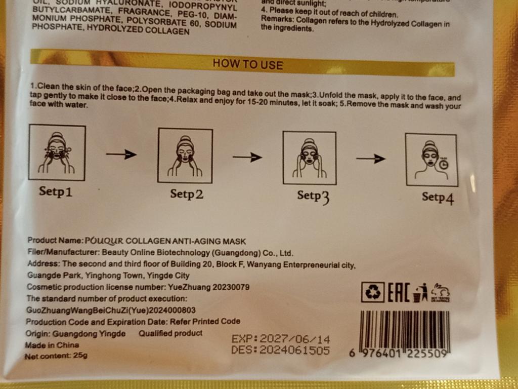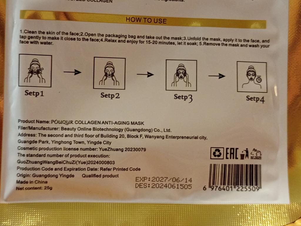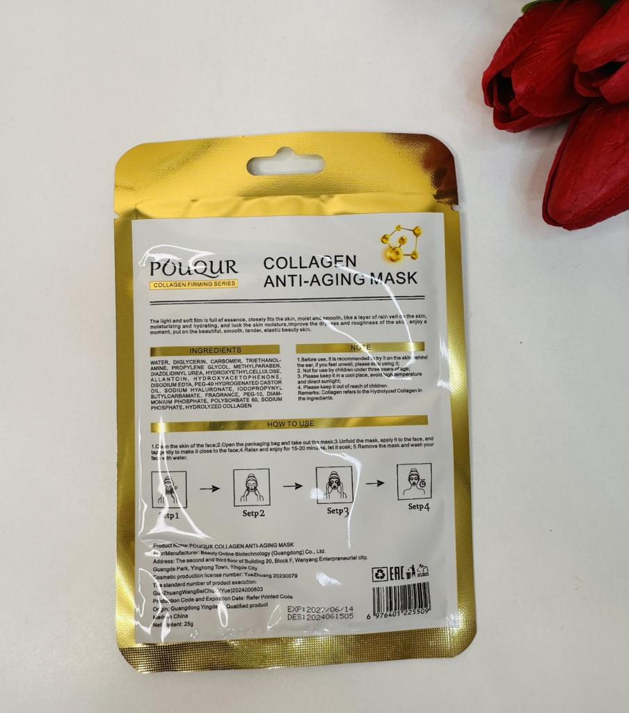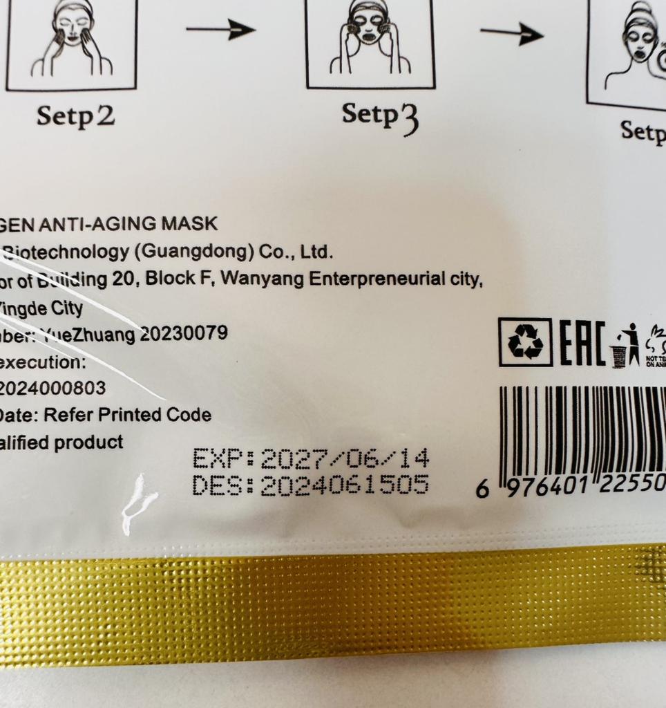 Tissue collagen masks Set of 5 masks, each in individual packaging Lots of liquid inside The mask is of standard shape and white color, fulfills its functions, with regular use the skin is rested and tightened.. Manufacturing date June 2024 The most positive impressions